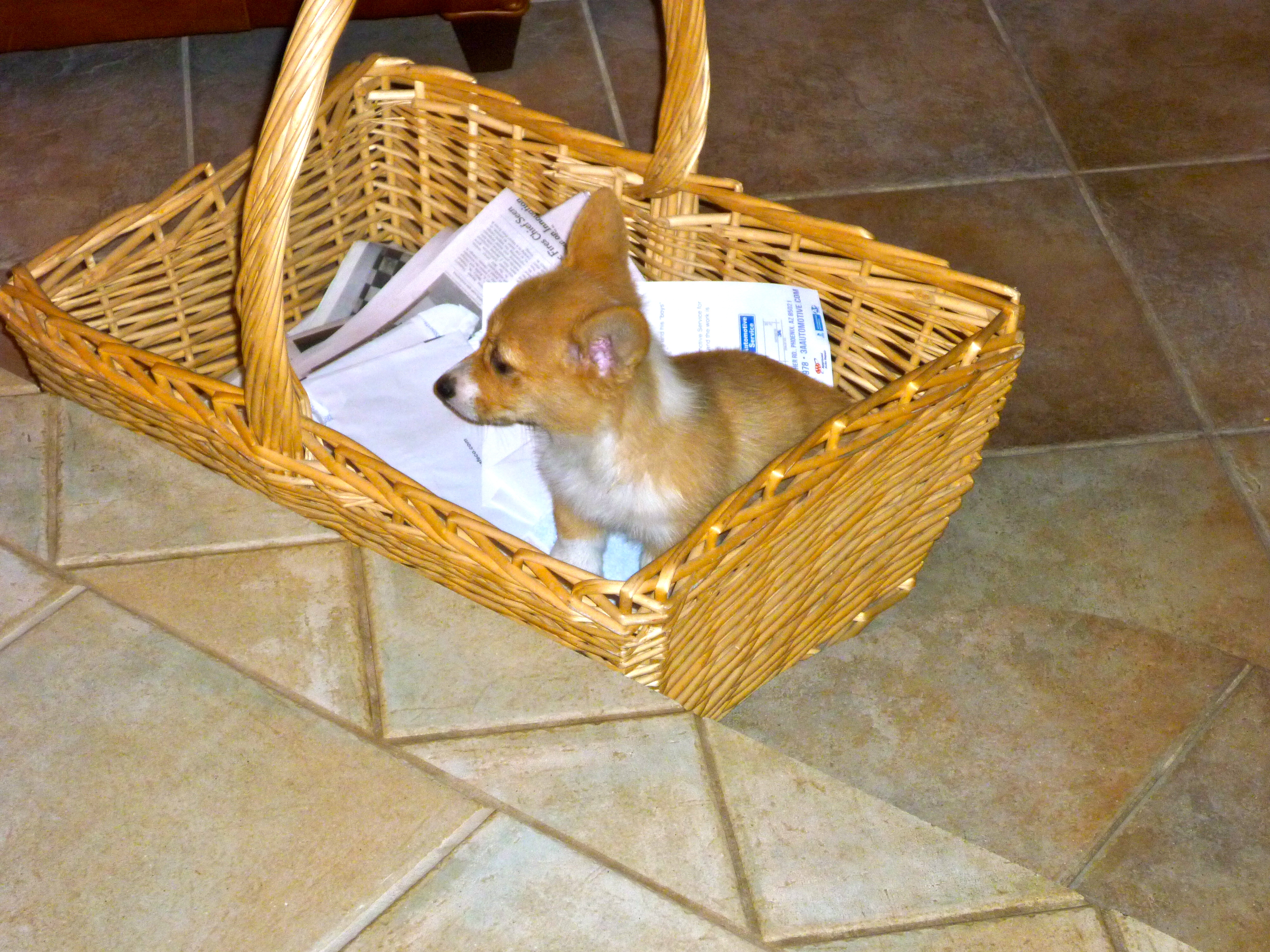 We’ve found the newspaper recycling basket, and we think it’s an extremely cool place to hang out. Adorable, eh?