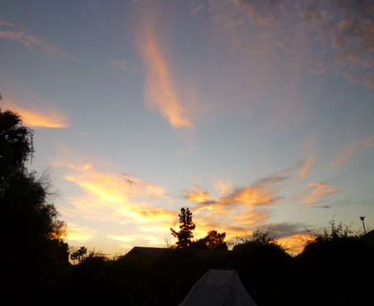 SDXB says a powerful storm dumped a flood of water out there in Sun City. Some school bus children were trapped under downed power lines. Hereabouts, in the rain shadow of the North Mountains, we got the dust fog, the spattering of fat rain drops, some vague lightning, and eventually a bit of wind.