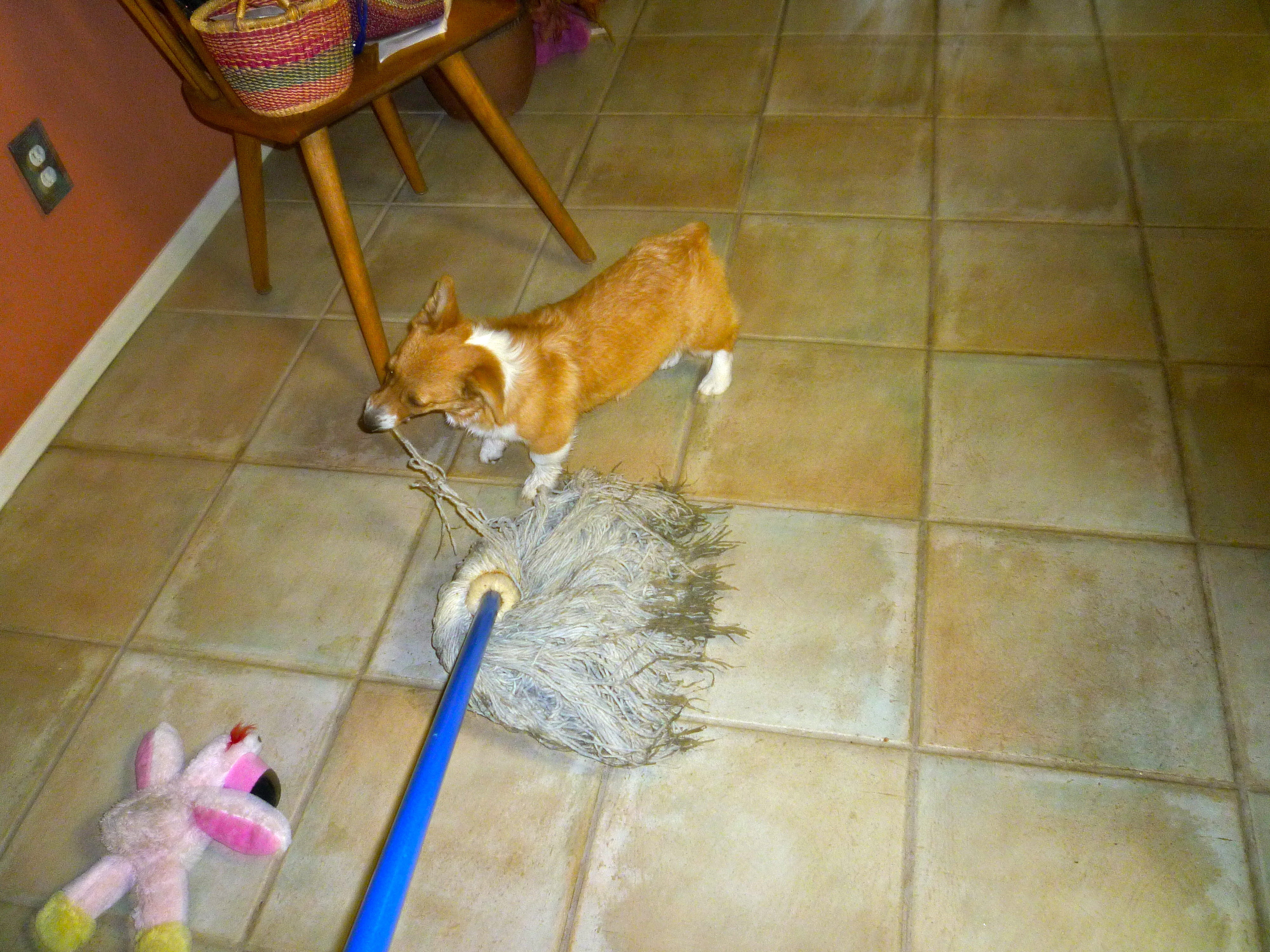 Puppy: Doggy water bowls make the best swimming pools ever! And RRRROOOOO how I DO LOVE a mop!