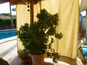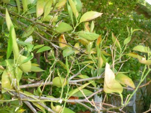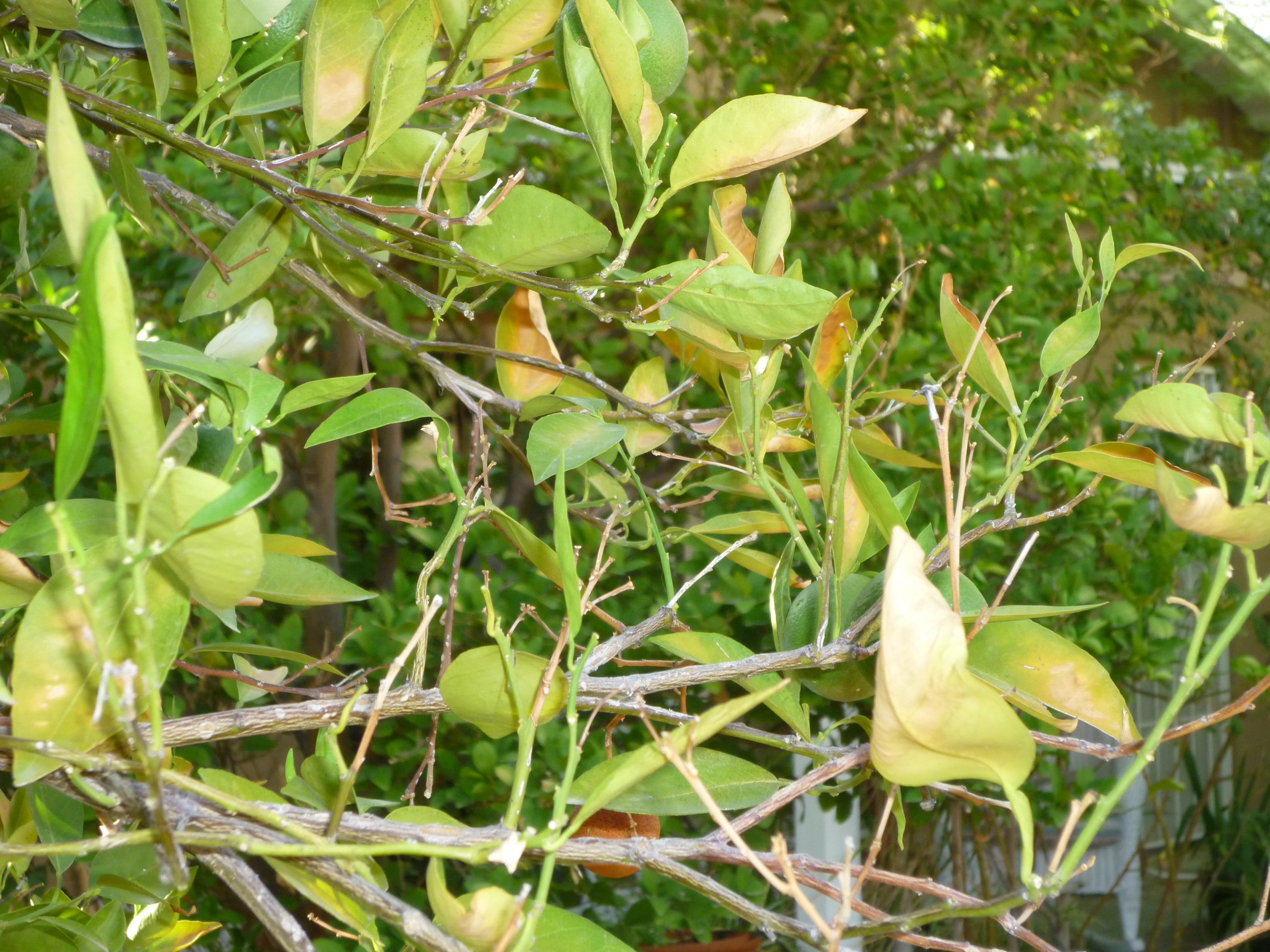My favorite orange tree, the one that produces fruit so sweet they taste like candy, has been suffering. This spring it quit adding new leaves, and the leaves that still cling to the branches are as sunburned as the ficus’s. I really don’t want that tree to die.