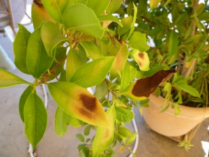 The big potted ficus tree, which gives the potentially stark back porch some character and even a little shade, is getting sunburned in the blasting heat. That’s even though the thing is under the shade of the patio roof. The morning sun is so fierce it burns the leaves before it gets high enough to be blocked by the roof.