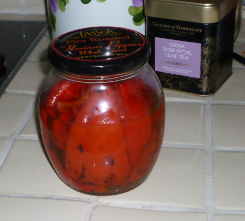 The rest of them…a lot of them…sat in the produce drawer until I realized I’d better cook them before they spoiled. In the meantime, I came across a giant bottle of roasted red peppers at Costco, the Home of the Lifetime Supply of Everything. So here’s what became of the sprouts and the peppers.