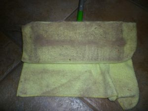 At first, this collected vast wads of dog hair. But after about four or five days, less and less dog hair came up…just a light skiff from all 1868 square feet. But what DIDN’T stop coming up was the dust. Every afternoon, the microfiber rag comes up BROWN, uniformly brown, same as the day before and the day before and the day before.