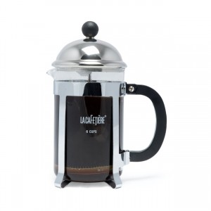 LOL! The Corningware glass pot heats very fast. Because it’s glass, it doesn’t impart any metallic flavor to the water for your French press coffee. If you can find one (a couple are available on Amazon right now), this gadget will put you at the height of style (again…). Just be sure they predate 1998.