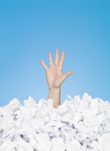 Wads and wads and wads of paper… Am I the only sheeple who’s sick & tired of having piles of paper inflicted on her? Paper physical and paper virtual, makes no difference: it’s all time-consuming, annoying, goddamn clutter.