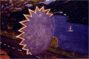 Three days into said project, along came…amazing! an ocular migraine! Sumbeach! A pair of pinking shears meandering across the field of vision… Who’d’ve thunk it?