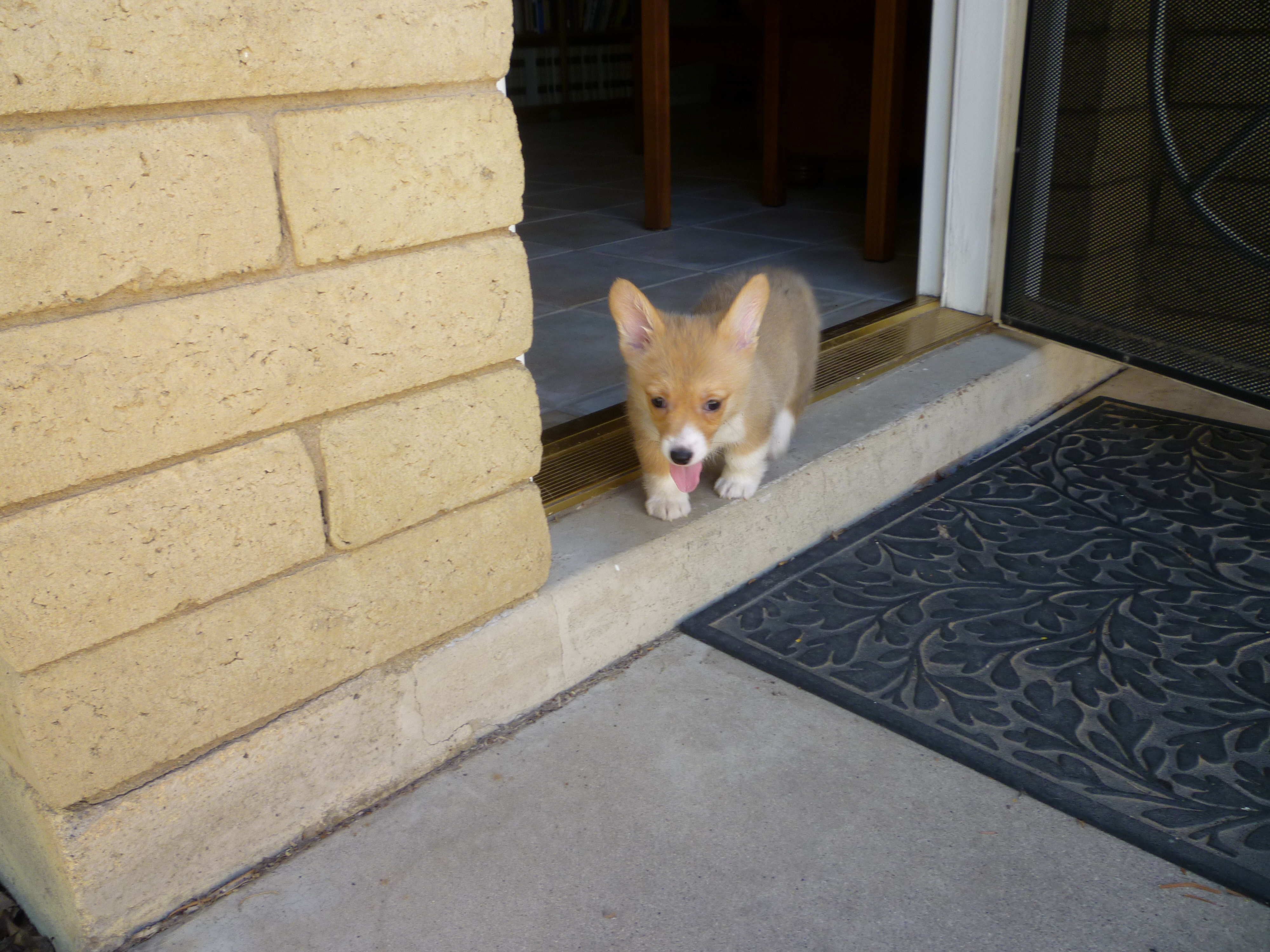 She’s such a LITTLE pup that it wouldn’t take much grumpiness on Cassie’s part to inflict some damage. And I’m not sure how much exercise an eight-week-old corgi needs. She’s pretty darned energetic. Races and races and races and races and snoozes briefly and springs up and races and races…. Cassie’s not inclined to play much — she prefers to save her energy for barking — and so it falls to the human to keep this small beastie amused.