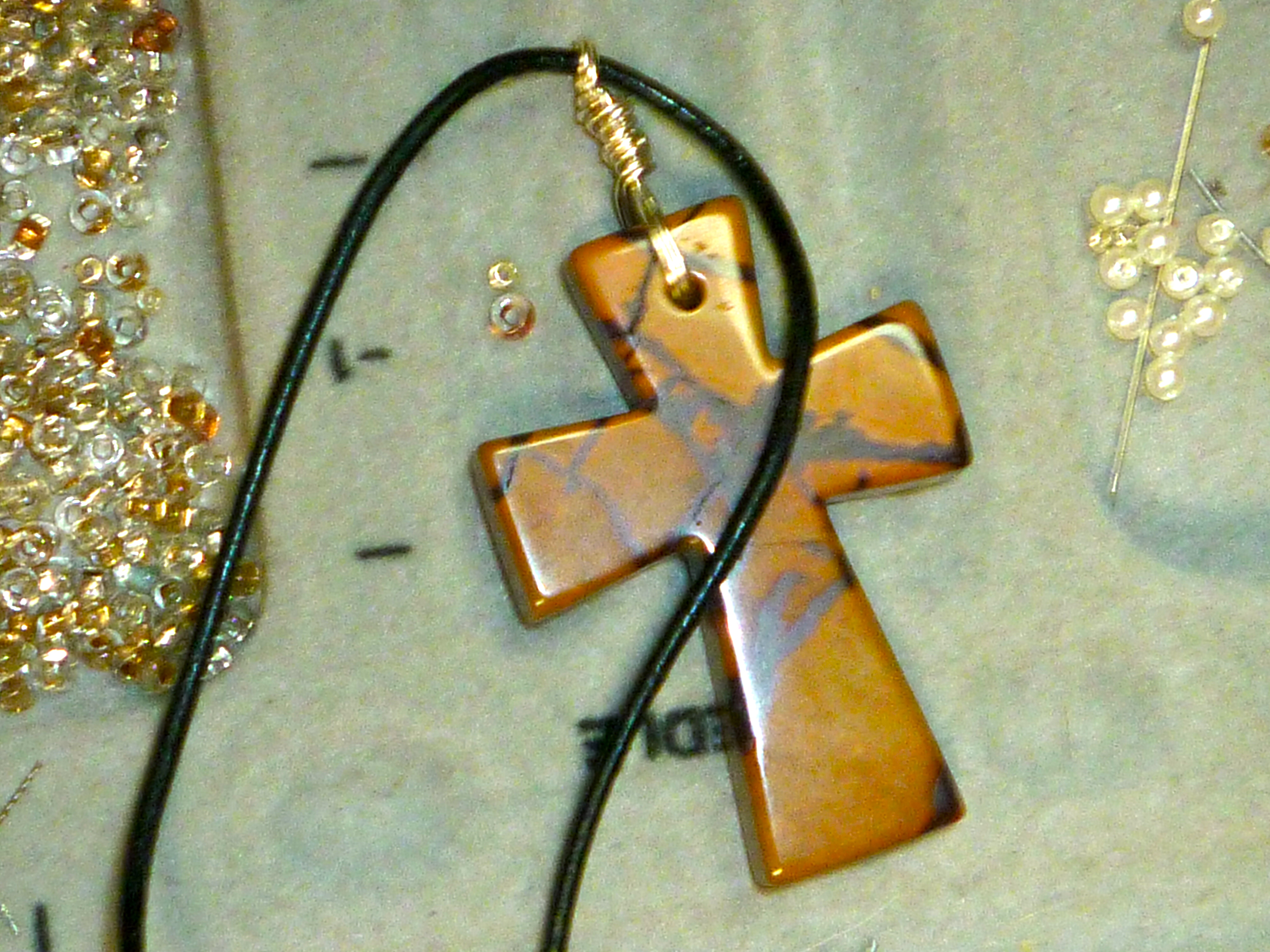 Some months ago, Carol gave me a stone cross of unknown provenance. It’s been waiting to be made into something…and so, why not?